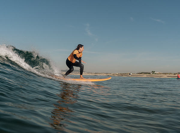 Join our beginner surf lessons in Portugal! You will learn all the beginner surf basics in a safe and supportive environment. You will also learn about the surf equipment and how to take care of it properly, as well as safety information and surf etiquette. You will gain an understanding of how the wind, tide, swell and currents interact with each other and how it affects the waves you surf.